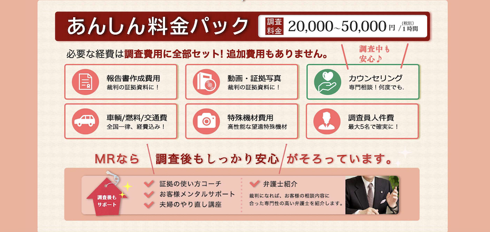 MR探偵事務所は他社と比べると料金が高めという声もあります。