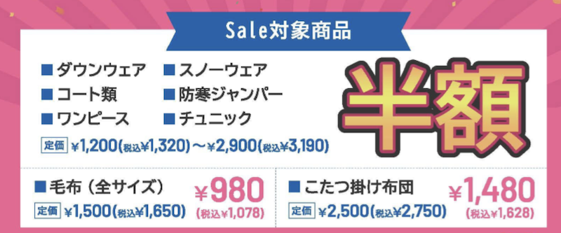 各店舗によって、セール内容は異なるので、お近くの店舗で詳しくご確認ください。